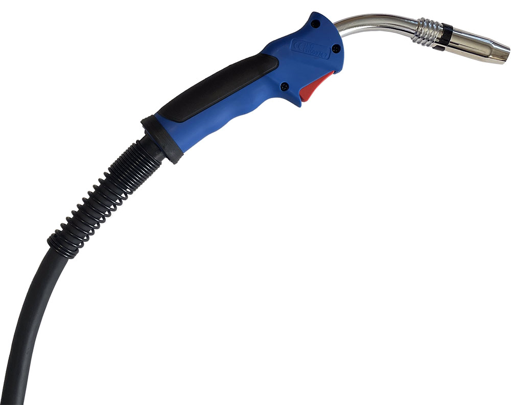 A pisztoly kék színű spirállal van szerelve, így 0.8 és 1.0 mm-es huzallal történő munkavégzésre áll készen. Amennyiben 1.0 mm-es huzalnál nagyobb méretű hozaganyagot használ, a spirált szükséges piros színűre cserélni.
