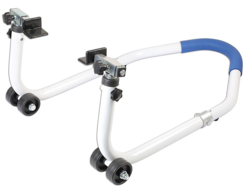 Motorkerékpár alátámasztó szerkezet első és hátsó tengelyekhez.